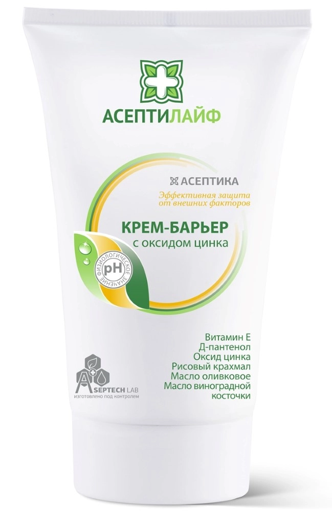 Крем-барьер с оксидом цинка из профессиональной серии уходовой косметики «Асептилайф» образует на поверхности кожи защитную пленку, эффективно защищая кожу от воздействия внешних раздражителей (физиологических выделений).