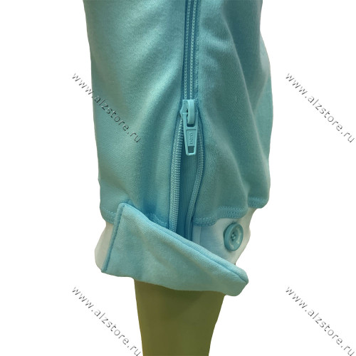 Оба конца молнии скрыты в специальных манжетах с клапанами на штанинах изделия. Пациент не имеет возможности самостоятельно их расстегнуть, чтобы снять подгузник или избавиться от одежды.