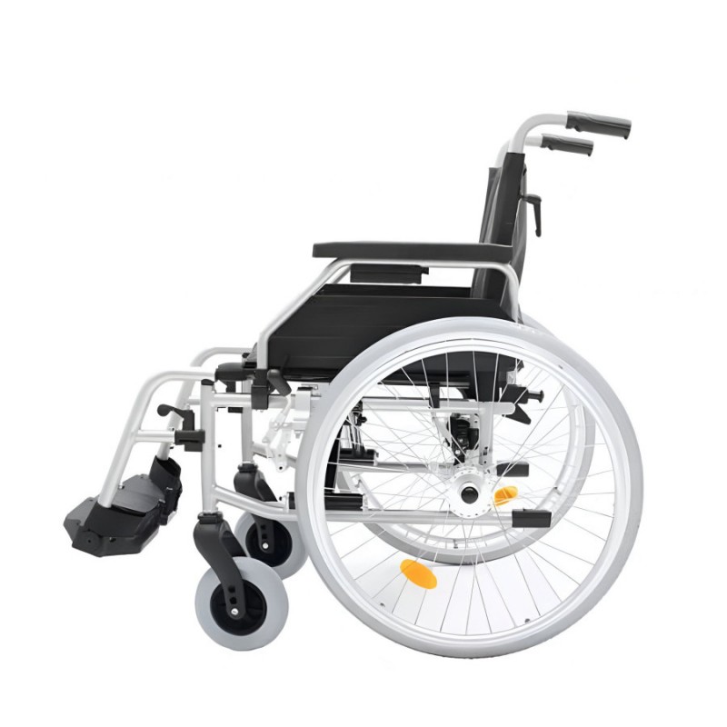 - Колеса: задние — пневматические (для ширины сиденья 39 см, 42 см, 45 см) или полиуретановые (для ширины сиденья 48 см, 51 см), быстросъемные, диаметром до 610 мм, что обеспечивает хорошую проходимость на различных покрытиях. Передние колеса полиуретановые диаметром 178 мм.