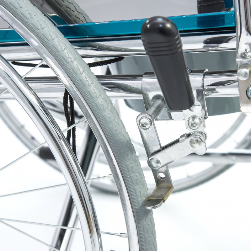 Кресло-коляска снабжено справа и слева рычагами стояночного тормоза, перемещением рычага можно осуществлять торможение кресла-коляски до полного блокирования.