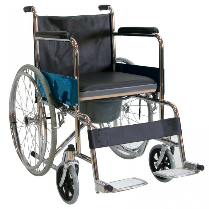 Рама выполнена из хромированной стали. Модель оснащена литыми задними и передними колесами. Сиденье съемное, оснащено быстросъемной санитарной емкостью.