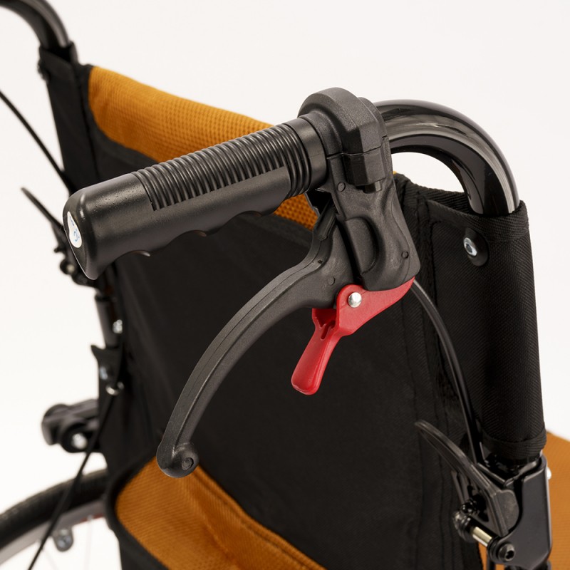 - Объединенный тормоз с функцией управления сопровождающим лицом позволяет легко и безопасно управлять коляской.
