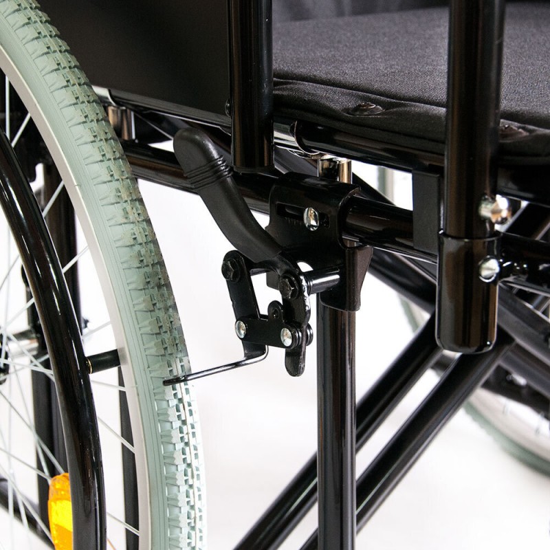 Кресло-коляска снабжена рычагами стояночного тормоза. С помощью них можно осуществлять торможение кресла-коляски до полного блокирования.