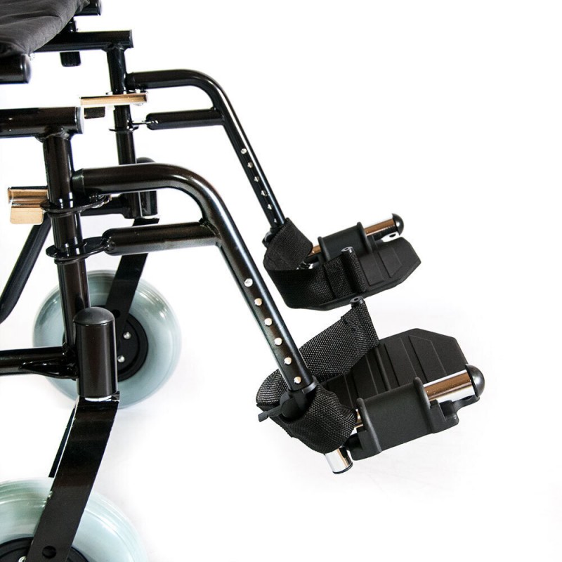 Несущие элементы и рама кресла-коляски модели сконструированы таким образом, чтобы обеспечить повышенную грузоподъемность и длительную безопасную эксплуатацию. Рама кресла-коляски выполнена из высокопрочной стали с лакокрасочным покрытием, которое защищает от коррозии и облегчает санитарную обработку. Важной особенностью кресла-коляски является особая конструкция рамы — ее складная часть состоит из двойной крестовины, которая позволяет равномерно распределить нагрузку на несущие элементы конструкции. Отметим, что конструктивной особенностью данной кресло-коляски является возможность регулировки высоты крепления задних и передних колес, что дает возможность настроить кресло-коляску для пользователей разного роста. Также данная функция позволяет отрегулировать угол наклона сиденья коляски, что обеспечивает больший комфорт при эксплуатации.
