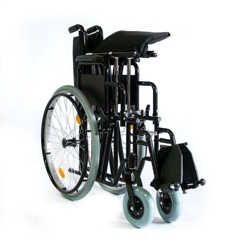 Кресло-коляска оснащена съемными подлокотниками, что делает удобным посадку и высадку инвалида. Кресло-коляска легко складывается и не требует применения каких-либо инструментов, что обеспечивает удобство транспортировки и хранения. Съемные подножки регулируются по высоте, что дает возможность настроить их в соответствии с нуждами пользователя. Также для безопасного использования кресло-коляска оснащена стояночным тормозом, который позволяет заблокировать колеса и предотвратить откат коляски назад.