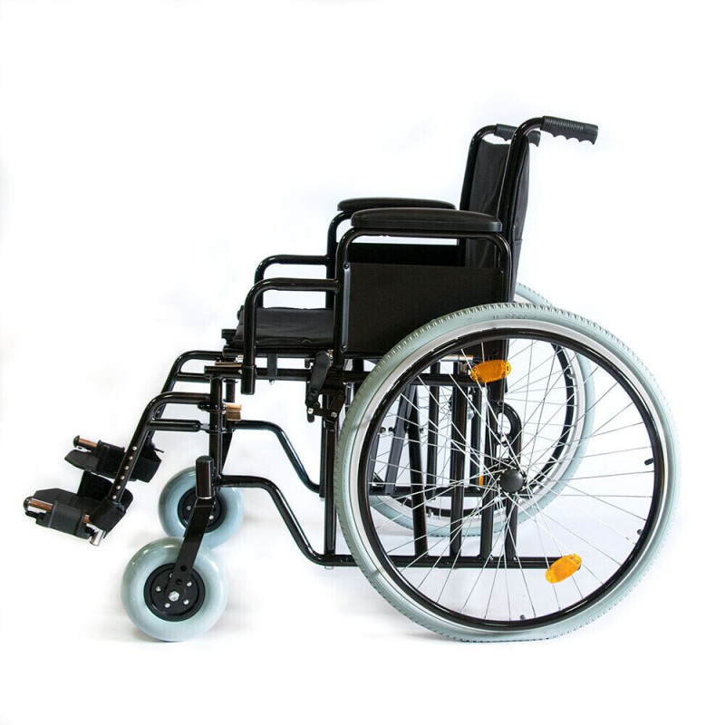 Инвалидная кресло-коляска предназначена для людей с большой массой тела. Данная модель представлена в трех вариациях — с эффективной шириной сиденья 54, 59 и 64 см, что дает возможность подобрать необходимую модификацию в соответствии с нуждами любого пользователя и клиента. Сиденье и спинка кресла-коляски сделаны из прочной ткани, способной выдерживать большие нагрузки. Еще одной важной особенностью конструкции является увеличенный диаметр несущей оси задних колес, которая сделана из специального высокопрочного сплава. Колеса данной коляски оснащены пневматическими шинами из износоустойчивой резины.