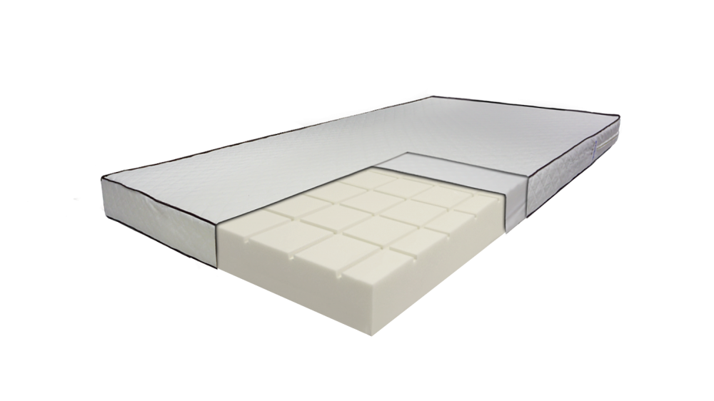 Матрац состоит из пенополиуретана вязкоэластичного со специальным профилем, который поддерживает позвоночник и шею в анатомически правильном положении, распределяет нагрузку между разными группами мышц, идеально приспосабливается к форме, весу и обеспечивает максимально комфортный и здоровый сон. Специальный наполнитель обеспечивает циркуляцию воздуха, создавая комфортный микроклимат постели. Съемный чехол изготовлен из поликоттона простеганного на синтепоне. Чехол оснащен застежкой-молния.