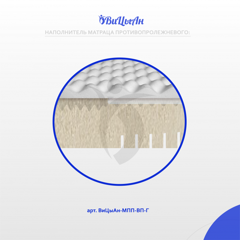 Матрац предназначен для людей с нарушением функций опорно-двигательного аппарата и нервной системы в целях предотвращения пролежней. Профилактика пролежней при длительном лежании. Обеспечение максимального комфорта. Комплексная реабилитация лечения пролежней. Для комфортного сна. Имеет направление положения.Уникальная конструкция матраца имеет в основании трапецевидный профиль, который формирует независимые конусы, эффективно распределяющие давление тела на поверхности ложа кровати. Поперечный профиль на нижней стороне матраца, позволяет ему принимать форму ложа, 1-2-3-4-секционной кровати. В зонах повышенного риска образования пролежней расположены ниши с гелевыми вставками 40*40 см.На верхней стороне, расположен слой натурального латекса, выступающий влагозащитным барьером, в то же время снижая чуствительность к разной жесткости наполнителя. Влагонепроницаемый съемный чехол матраца изготовлен из мембранной, синтетической ткани (полиэстер 100%) с влагонепроницаемым, паропроницаемым, полиуретановым покрытием плотностью 150 г/м² . На чехле по центру торцевой части вшита молния.1. Благодаря уникальной конструкции матрац оказывает хорошую поддержку тела во время сна и создает все условия для полноценного лечения.2. Ячейки наполнителя не слипаются, независимые конусы даже при максимальой нагрузке на них оставляют между собой воздушные каналы, создавая вентиляцию, что значительно увеличивает срок эксплуатации.3. Съемный чехол легко снимается, поэтому осуществлять надлежащий уход и своевременную обработку, дезинфекцию, стирку и сушку (в зависимости от загрязнения) матраса можно многократно. 4. Не имеет швов на рабочей поверхности5. Молния защищена влагонепроницаемым клапаном6. Благодаря водонепроницаемому покрытию, жидкость с поверхности чехла легко удаляется и не проникает во внутрь изделия.7. Специальная антибактериальная обработка, защищает от распространения бактерий.8. Эластичность чехла позволяет не вызывает ответного давления и способствует равномерному распределению массы тела на поверхности ложа.9. Антискользящая поверхность препятствует скатыва