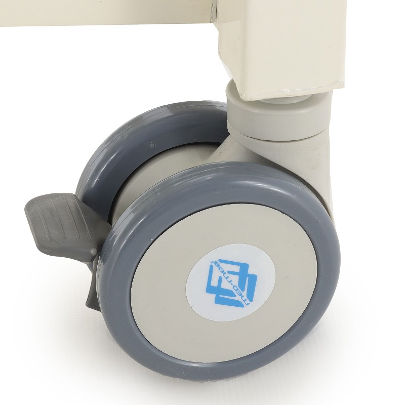 - Колеса: самоориентирующиеся полиуретановые с тормозами, обеспечивают легкое перемещение и устойчивость.