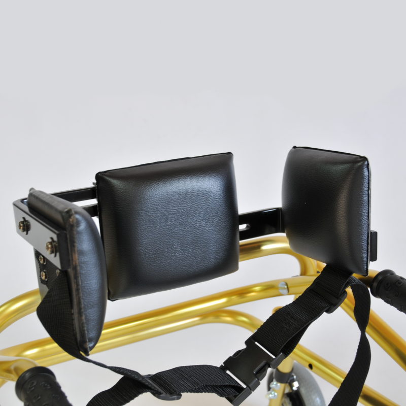 Стабилизатор спины оснащен тремя поддерживающими подушками, фиксирующими туловище в одном положении, а также страховочным ремнем для безопасности. Стабилизатор регулируется в зависимости от размеров туловища ребенка: максимальная ширина между боковыми фиксирующими подушками – 32 см.