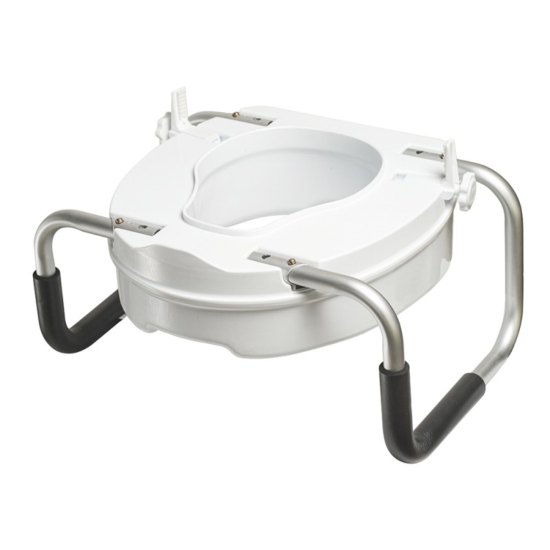 Подходит для унитаза любой формы, устанавливается и фиксируется при помощи двух креплений. Гигиенический пластик легко моется и не впитывает запахи. Эластичные резиновые уплотнители позволяют избежать механических повреждений как насадки, так и унитаза. Большие широкие поручни покрыты мягкими накладками, приятными для соприкосновения с кожей.