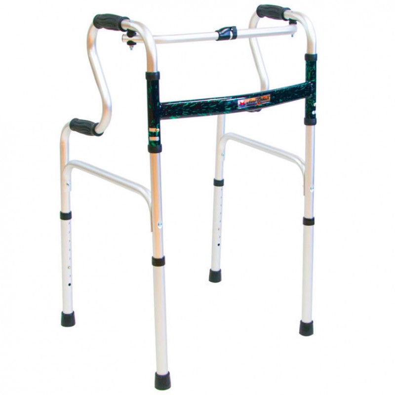 Опорные поручни ходунков выполнены из анодированного алюминия и не подвергаются коррозии, соединяющая рама — из стали с полимерным покрытием. Ходунки легко складываются и не занимают много места, имеют 8 положений регулировки высоты с шагом в 2,5 см. Мягкие накладки на поручнях ходунков не дают рукам скользить; резиновые наконечники, расположенные на опорах, предохраняют от скольжения по твердым поверхностям.