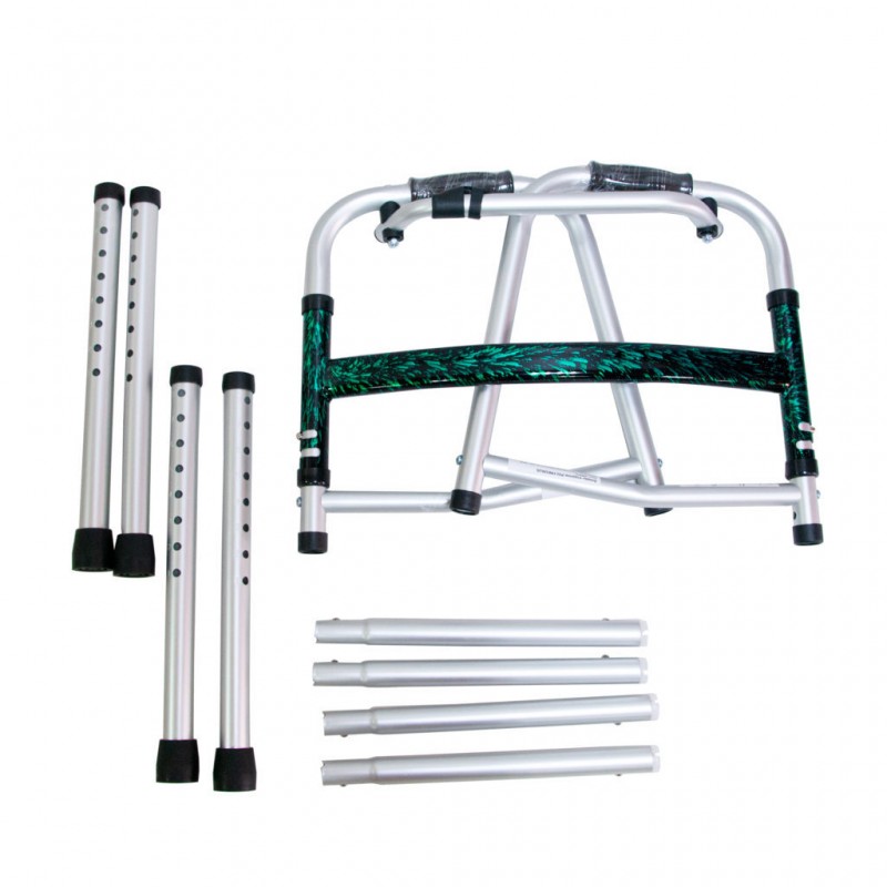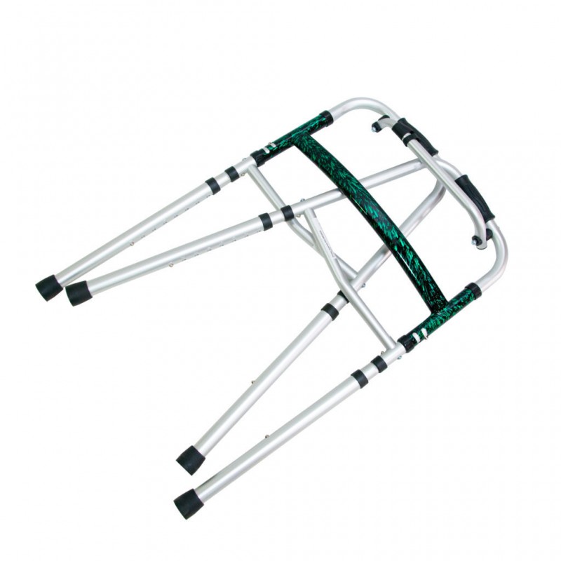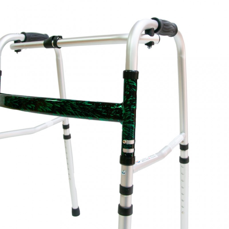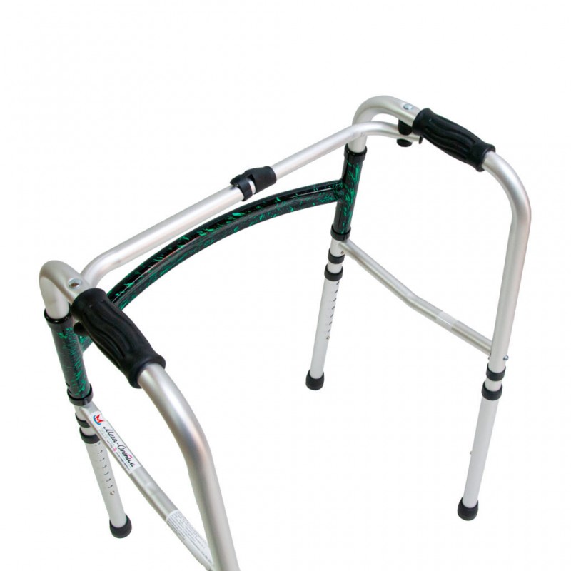 Опорные поручни ходунков выполнены из анодированного алюминия и не подвергаются коррозии, соединяющая рама – из стали с полимерным покрытием. Ходунки легко складываются и не занимают много места, имеют 8 положений регулировки высоты с шагом в 2,5 см. Мягкие накладки на поручнях ходунков не дают рукам скользить. Резиновые наконечники на опорах ходунков предохраняют от скольжения по твердым поверхностям.